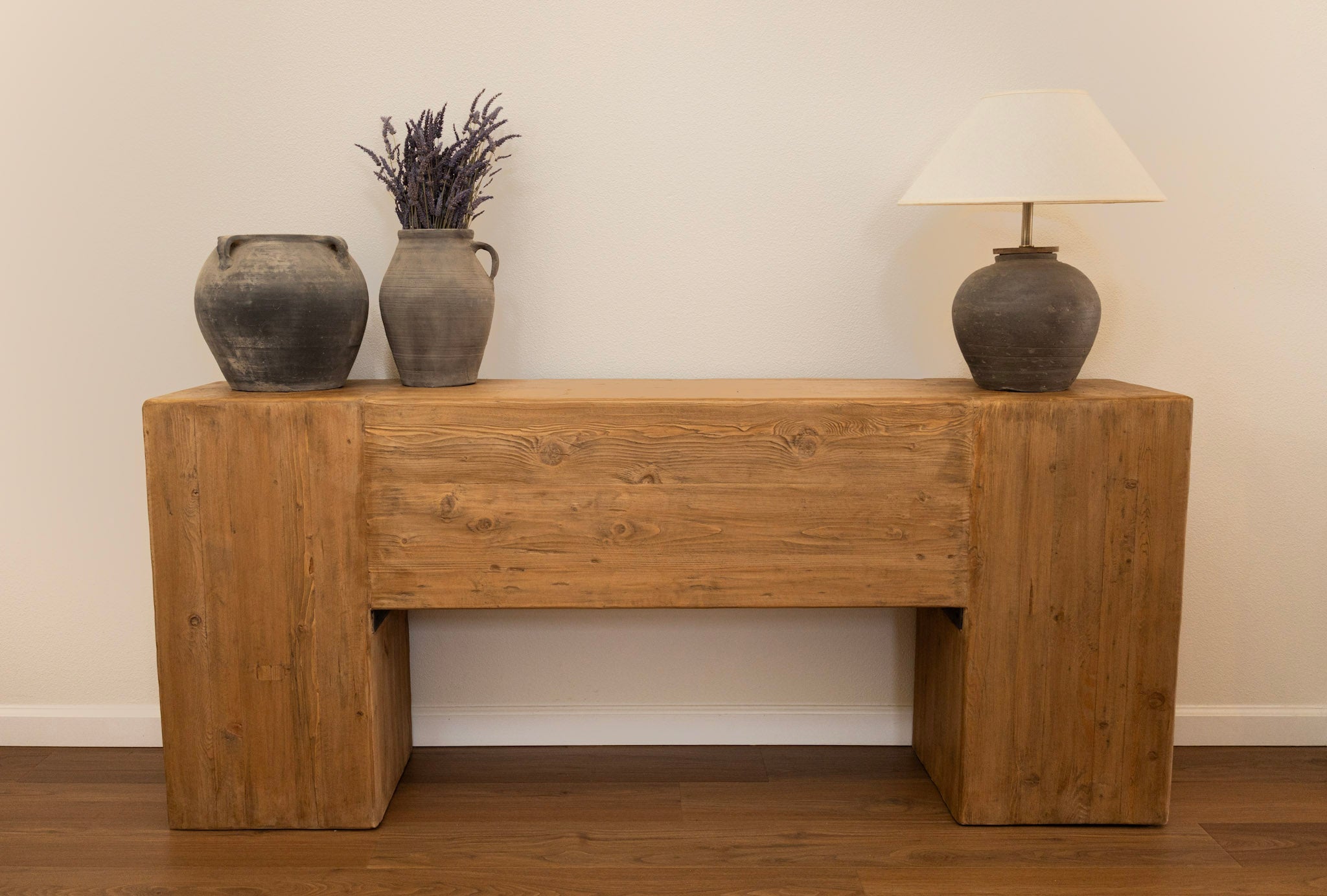 Introducing our Antoinette Console Table, a perfect fusion of rustic charm and practical elegance. Handcrafted from solid reclaimed pine wood, this robust piece exudes character and timeless appeal, making it an ideal addition to your entryway, living room, or hallway.
