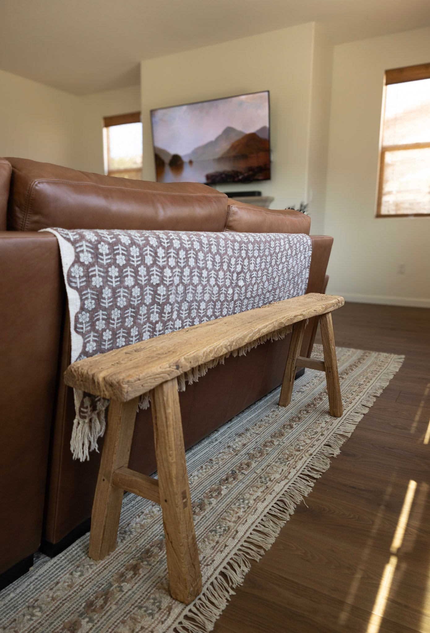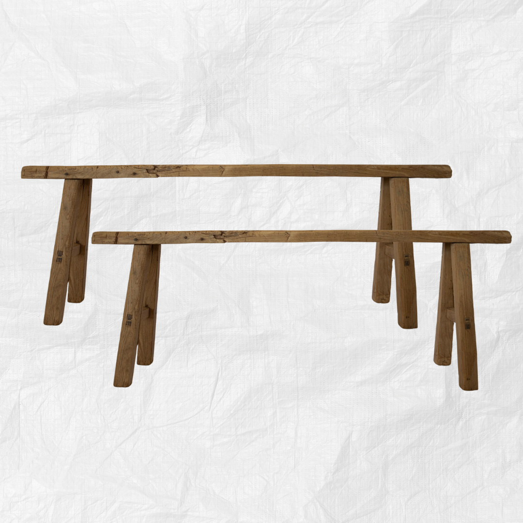 Transform your space with our Skinny Bench, crafted from repurposed elm wood. Each bench boasts a unique design, showcasing the wood's natural imperfections and rich grain patterns. A piece of history brought into your home.