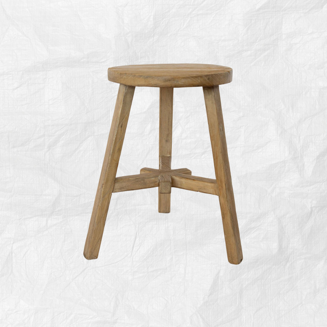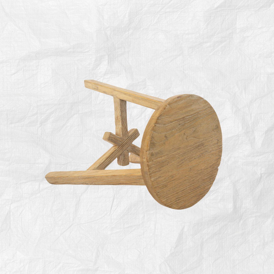 Crafted from century-old elm wood, this stool combines rustic charm with modern durability. Its robust construction and timeless design make it a perfect addition to any space seeking a touch of history and elegance.